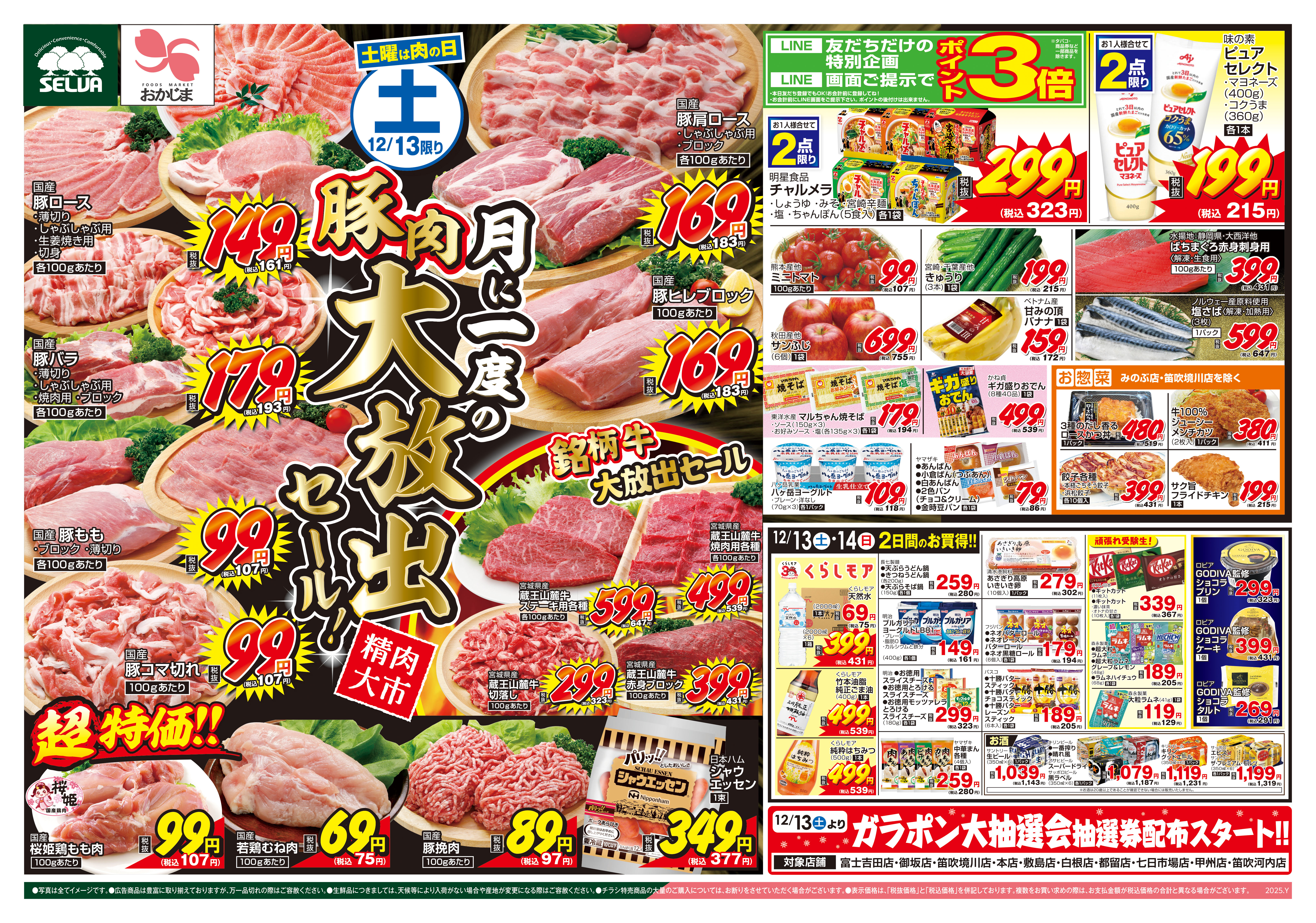 - 12/13号 月に一度の豚肉大放出セール!!+12/13(土)~ガラポン大抽選会 抽選券配布スタート!