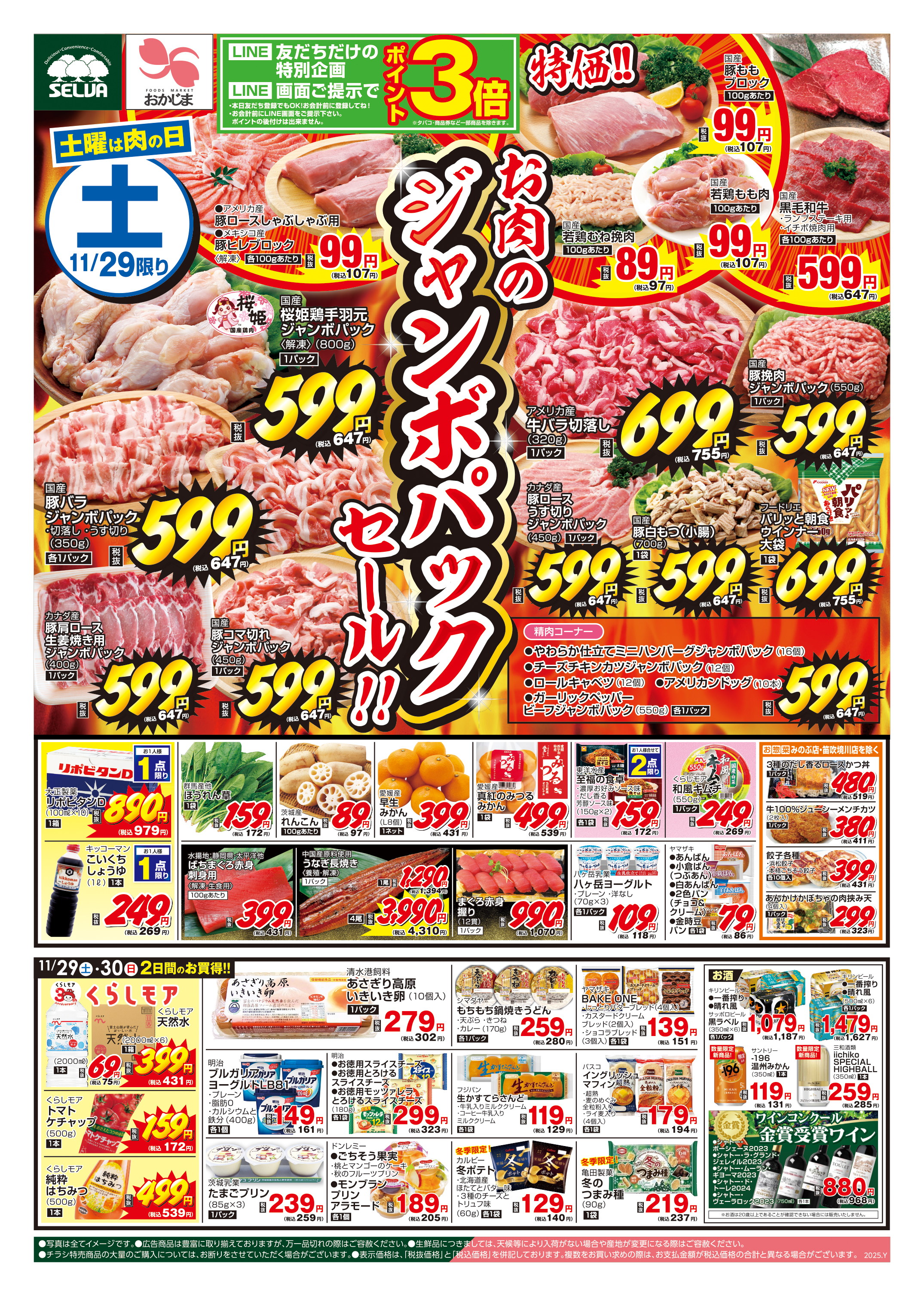 11/29号 お肉のジャンボパックセール!!+ワインコンクール金賞受賞商品販売中!
