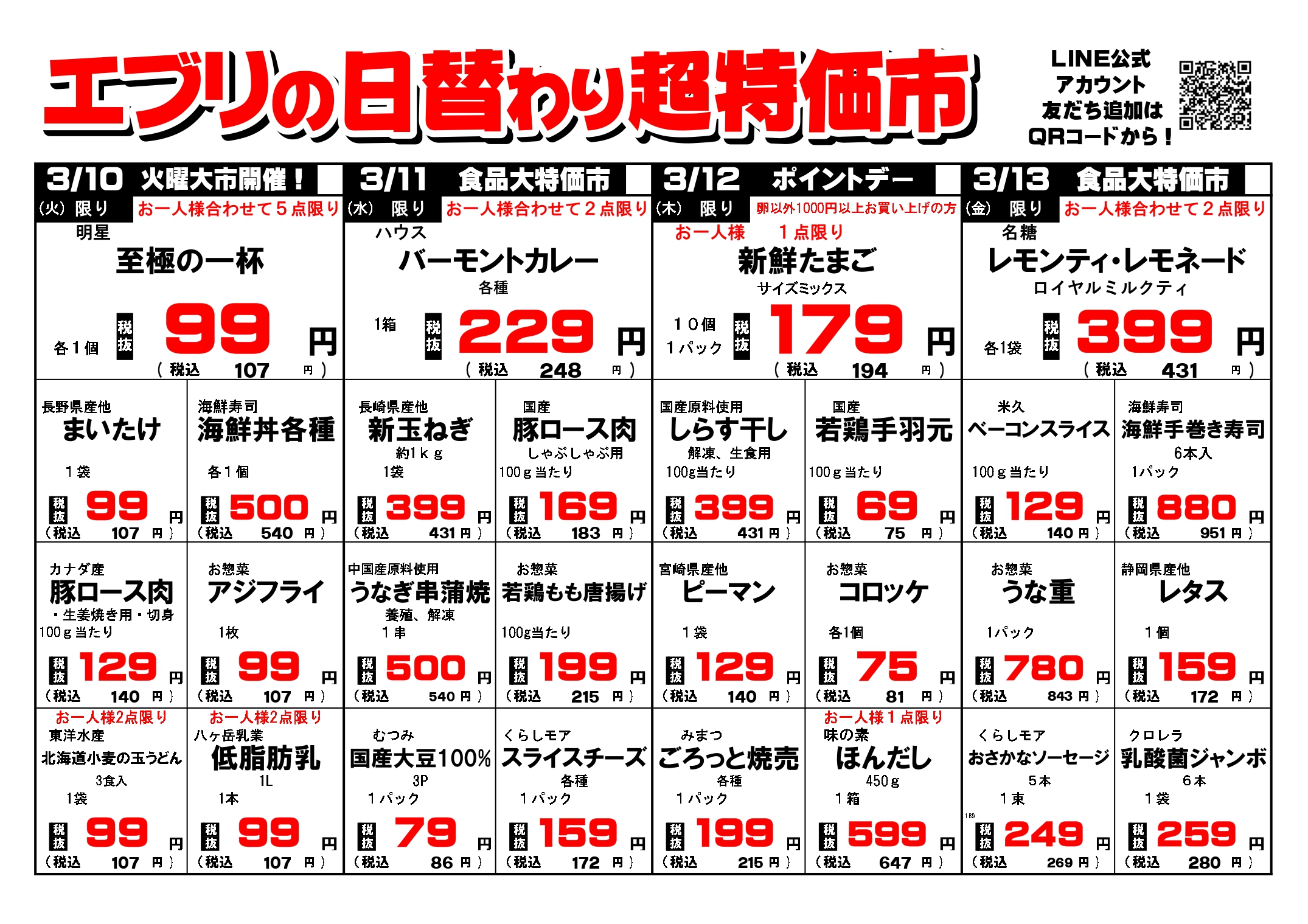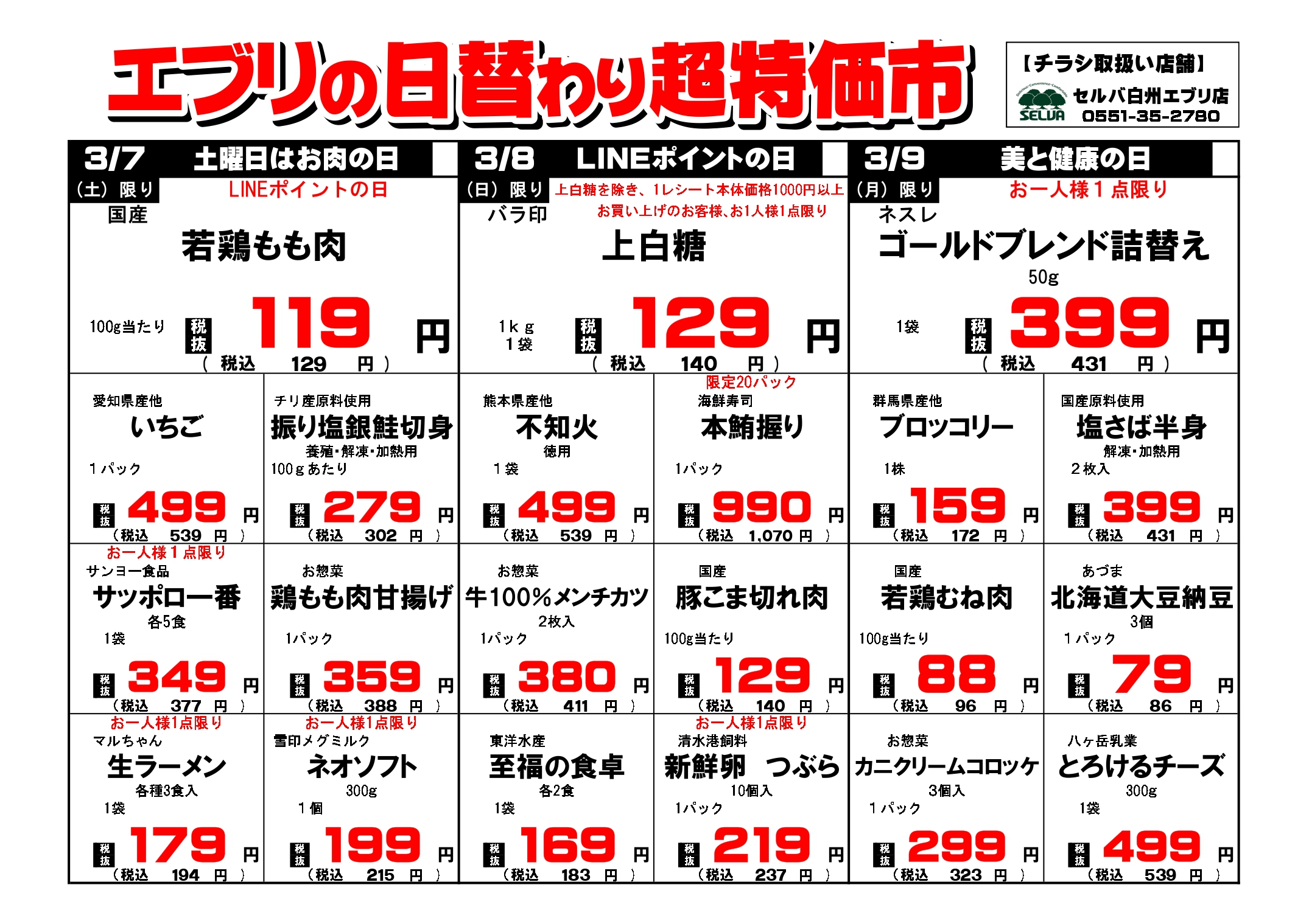 【3月7日~3月13日】セルバ白州エブリ店の超特価市