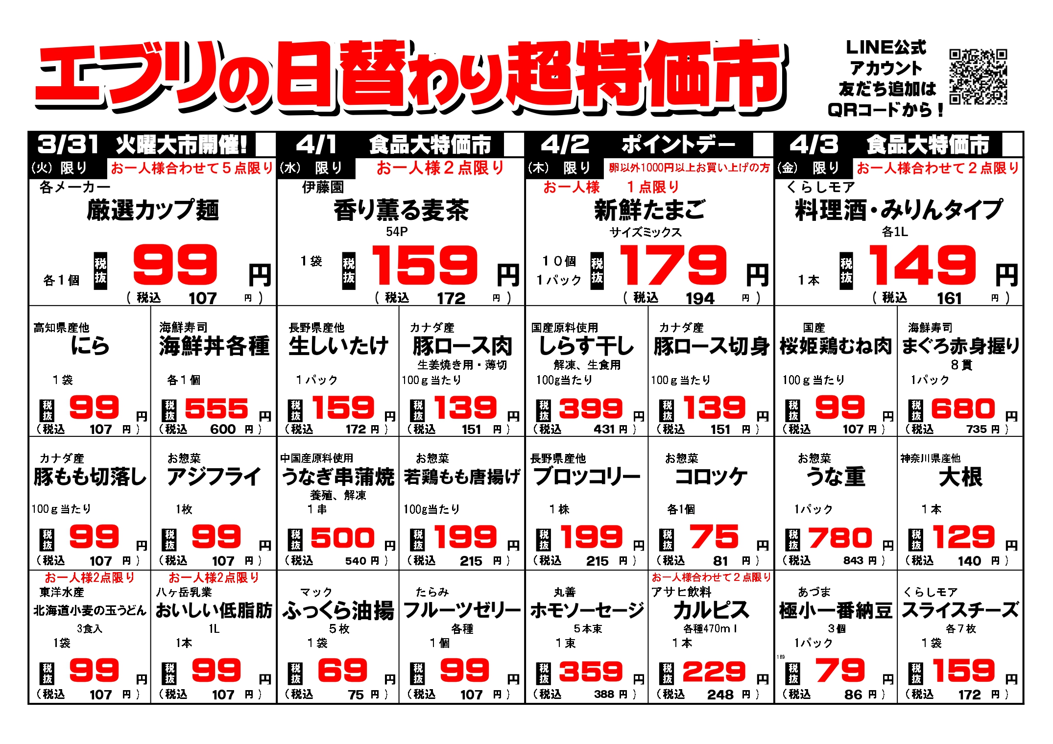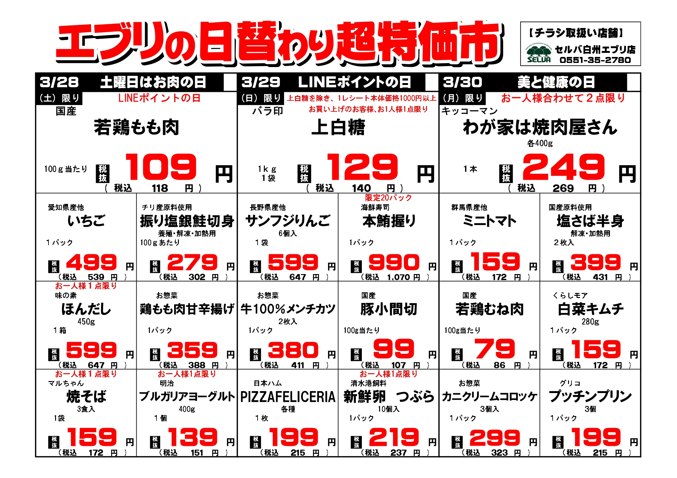 【3月28日~4月3日】セルバ白州エブリ店の超特価市