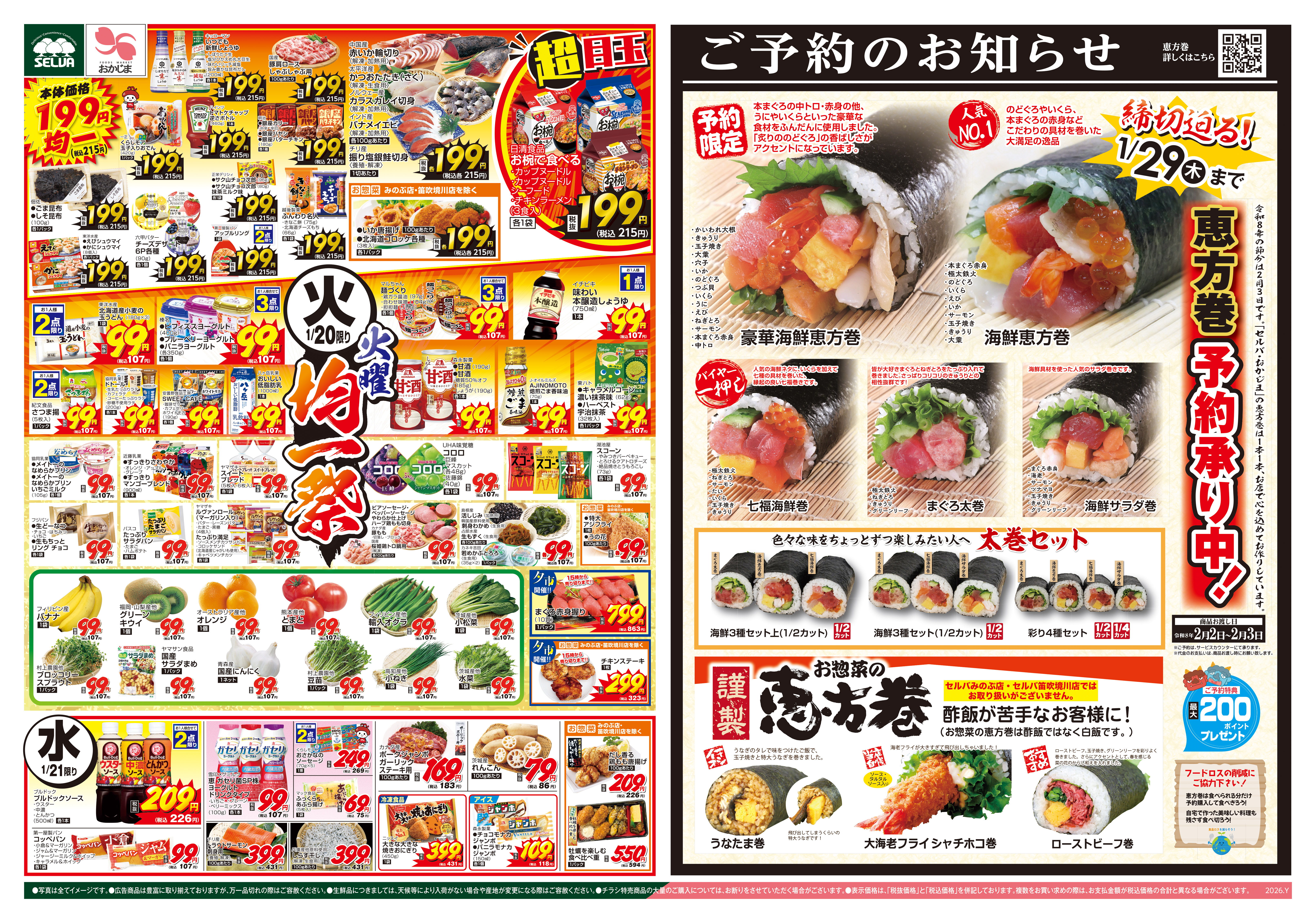 1/20号 火曜均一+ブラックとくとく市~恵方巻ご予約承り中!~